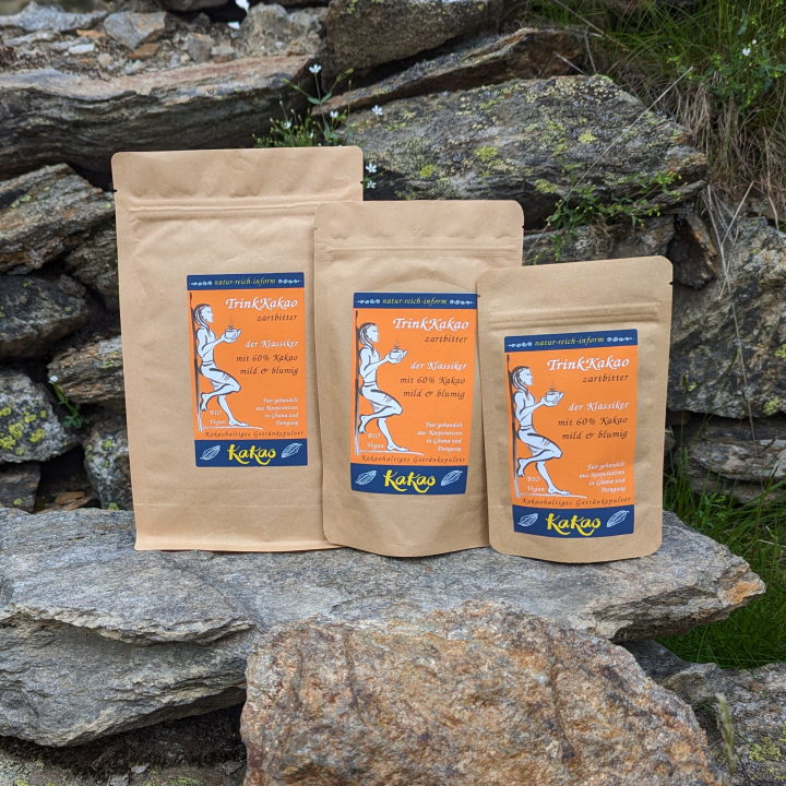Unsere Getränkepulver offen als Bulkware in Papiersäcke abgewogen. Mindestbestellmenge 2 kg Für weitere Produktddetails zu den einzelnen Sorten, bitte bei den jeweiligen Packungen nachsehen: KolaKao würzig KolaKao würzig ungesüßt KolaKao mit Maca KolaKao mit Maca ungesüßt KolaKao mit Guarana KolaKao mit Guarana ungesüßt GuaKao (bio) GuaKao ungesüßt (bio) Trinkkakao (bio) Kakao pur (bio)
