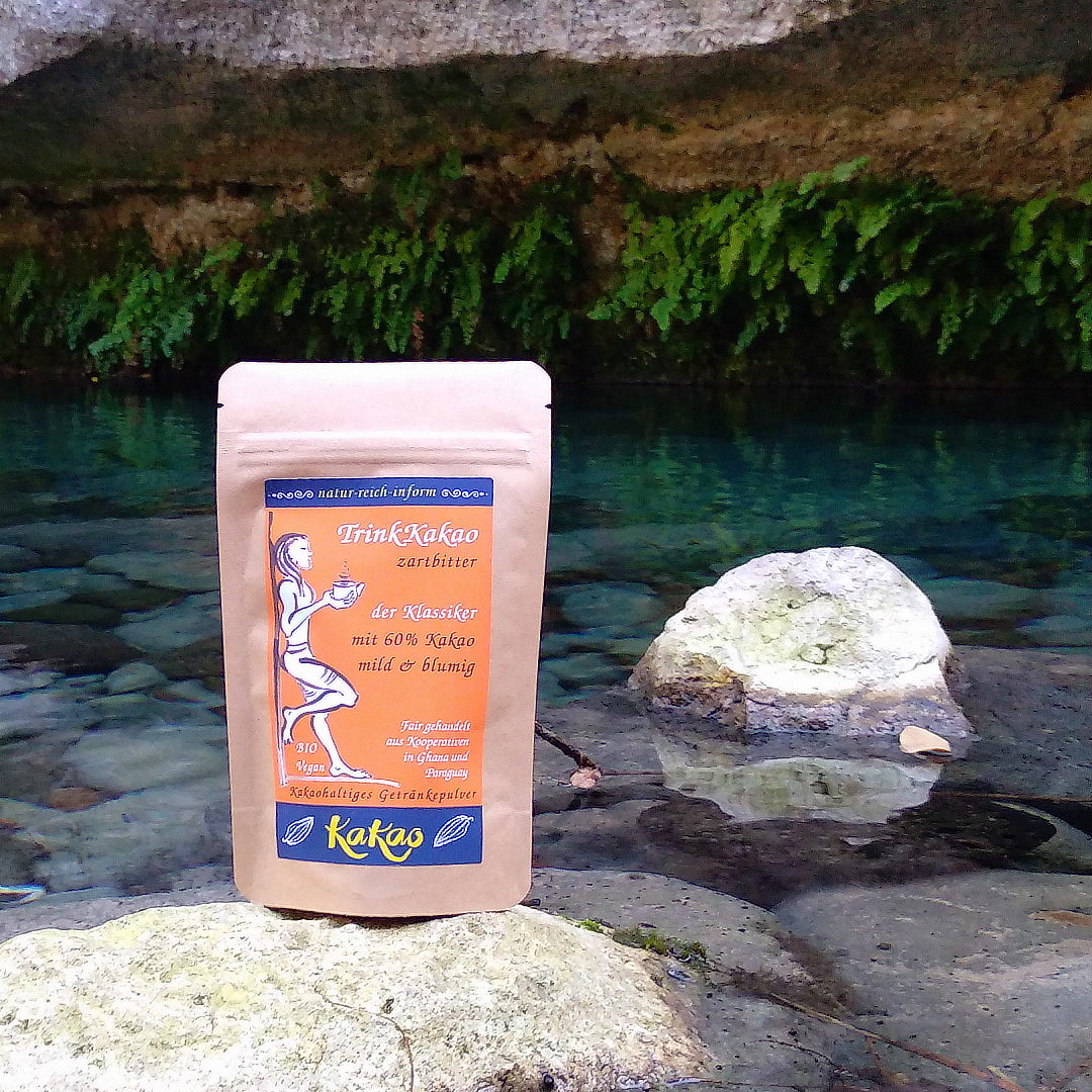 Kakaohaltiges Getränkepulver, ohne Zuckerzugabe.Für alle ungesüßten Freunde und Liebhaber hochwertiger Kakaogenüsse. Der Geschmack liegt zwischen super schokoladig, zart blumig und dezent cremig. Das super schokoladige Getränkepulver mit 80% Kakao, basierend auf dem schwach entölten Criollo-Edelkakao aus Atalaya in Peru. In Geschmack und Konsistenz wie ein klassischer Trinkkakao aus Omas Zeiten: allerdings gänzlich ungesüßt aber dafür schön schokoladig. Abgerundet mit 13% kraftvoller und cremiger Macawurzel und mit einer Spur Meersalz als Geschmacksvollender. Die Rohstoffe sind fair gehandelt aus Bio-Kooperativen in Südamerika. Zubereitung in 200ml: 2 bis 3 Teelöffel = 10g Getränkepulver in in 80ml heißer Flüssigkeit mit einem Schneebesen oder Löffel einrühren. Nach Geschmack heiß oder kalt mit Milch, Pflanzendrink oder Wasser aufgießen. Idealerweise 2 Minuten ziehen lassen und bei Bedarf umrühren. Zutaten: 80% Kakaopulver*¹, 13% Maca*¹, Reismehl*, Meersalz* aus biologischen Anbau¹ auf fairem Handelvegan und rein natürlich DE-ÖKO-021aus Nicht-EU-Landwirtschaft Nährwerte pro 100g pro Portion (10g) Energie: 1529 kJ 153 kJ 369 kcal 37 kcal Fett gesammt: 17,1g 1,7g gesättigte Fettsäuren: 10,5g 1,1g Kohlenhydrate: 21,7g 2,2g davon Zucker: 4,1g 0,4g Eiweiß: 2,7g 0,3g Salz: 0,4g < 0,1g Hersteller: natur-reich-inform, Anna-Theresia Schmidt, Schloßstr.1, 01665 Klipphausen
