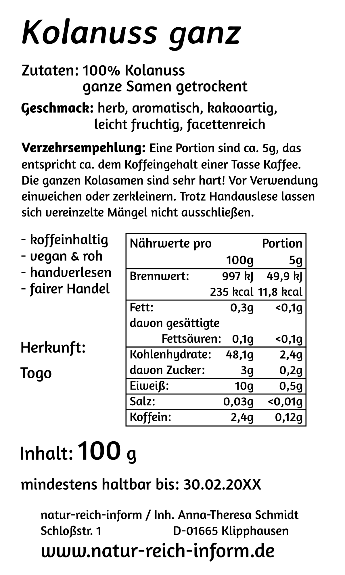 - Cola / Kolanuss pur, geschält und handverlesen.