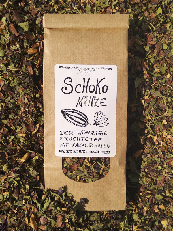 Kakaoschalen* (44%), Aroniabeeren*, Malve* Blatt und Blüte, schwarze Johannisbeeren*, Süßholz*, Pfefferminze* (5%), Orangenblüten*, Rosenblütenblätter*